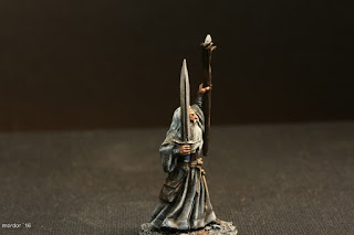 So, for the last two days I´ve been working on my favourite miniature of Gandalf the Grey. The figure is just soooo beautiful! And I tryed some painting-things, most of all the structure of the clouth and the painting of shaddows instead of just painting highlights on a dark base layer.